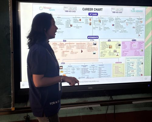 On 31st January 2025, A Career Guidance Session was successfully conducted at ZPHS Jagathgiri Gutta, reaching out to 143 students from 9th grade. The students were divided into two sessions, where they received valuable insights on various career paths after 10th grade and available scholarship opportunities. Volunteers played a key role in managing the session smoothly, assisting with arrangements and distributing kits to the students.
